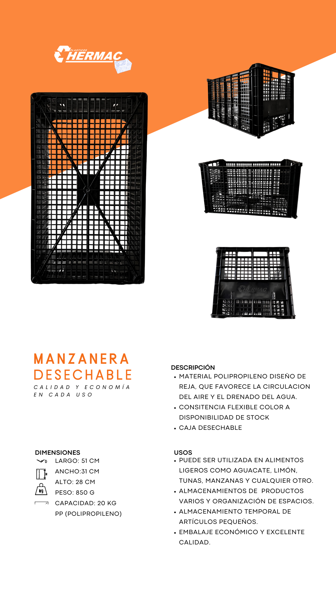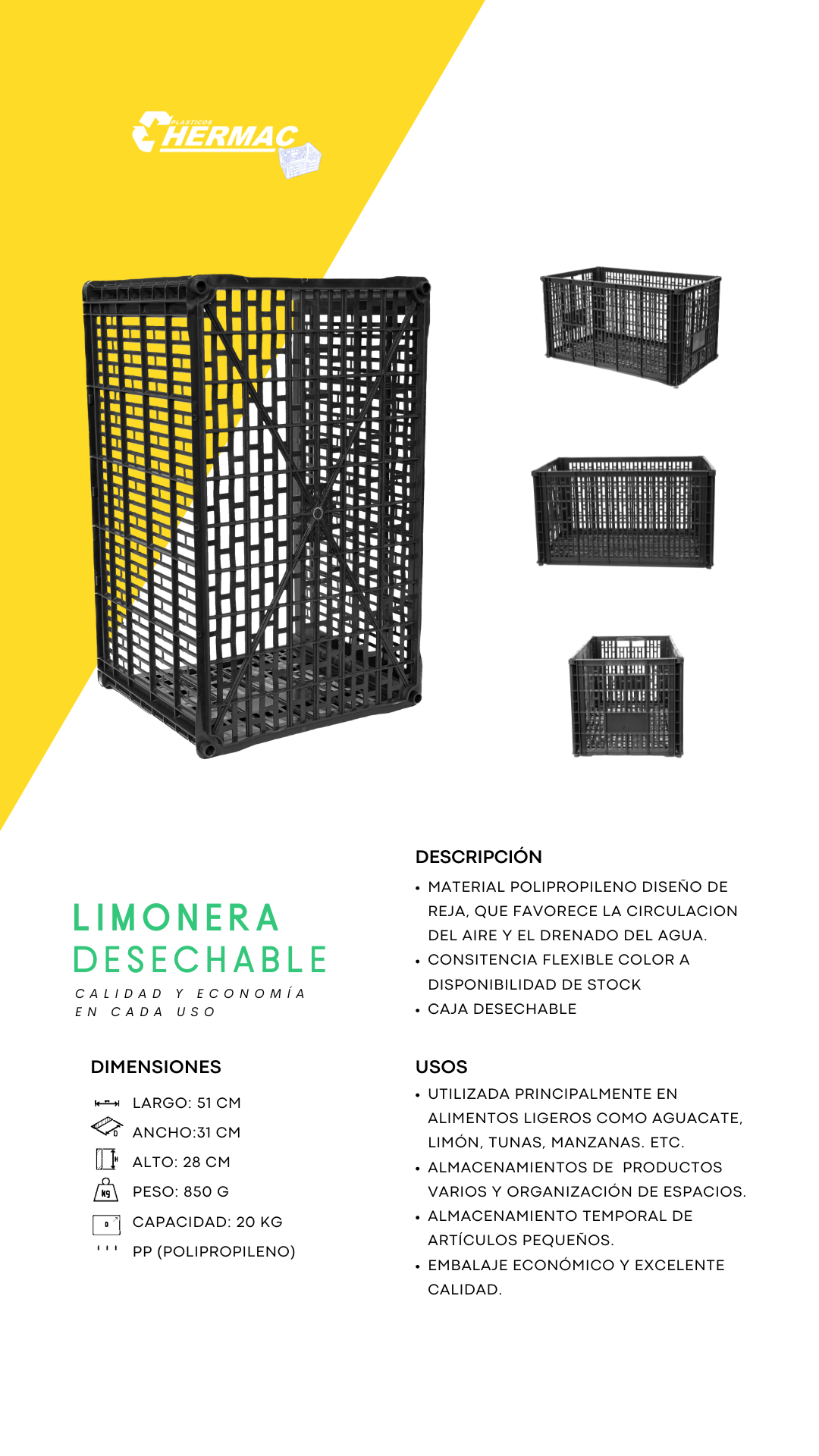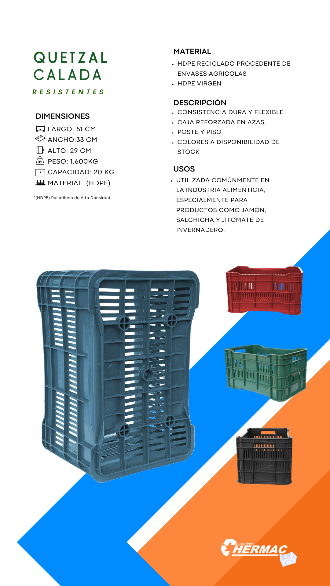 En Hermac, nos especializamos en la fabricación de cajas de plástico de alta calidad. Ofrecemos soluciones personalizadas y sostenibles diseñadas para satisfacer las necesidades de diversas industrias.